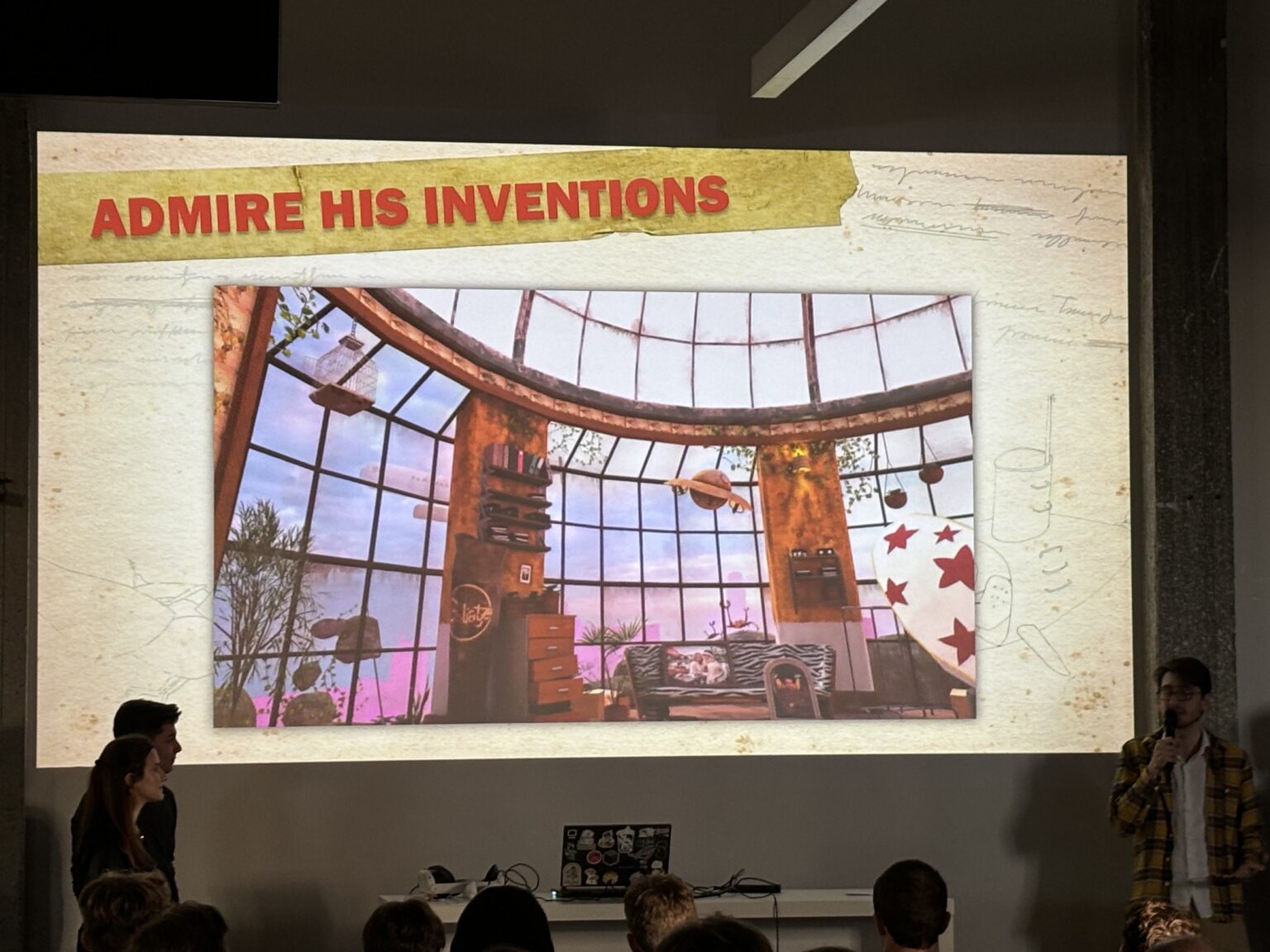The proof of concept was created by one student team over the course of a full semester. Throughout the project, the team worked closely with DAE Research staff and received weekly feedback to refine both the gameplay and its connection to Panamarenko’s way of thinking. A visit to the Panamarenko House played an important role in this process, helping the students better understand the artist, his work, and the context in which it was created.